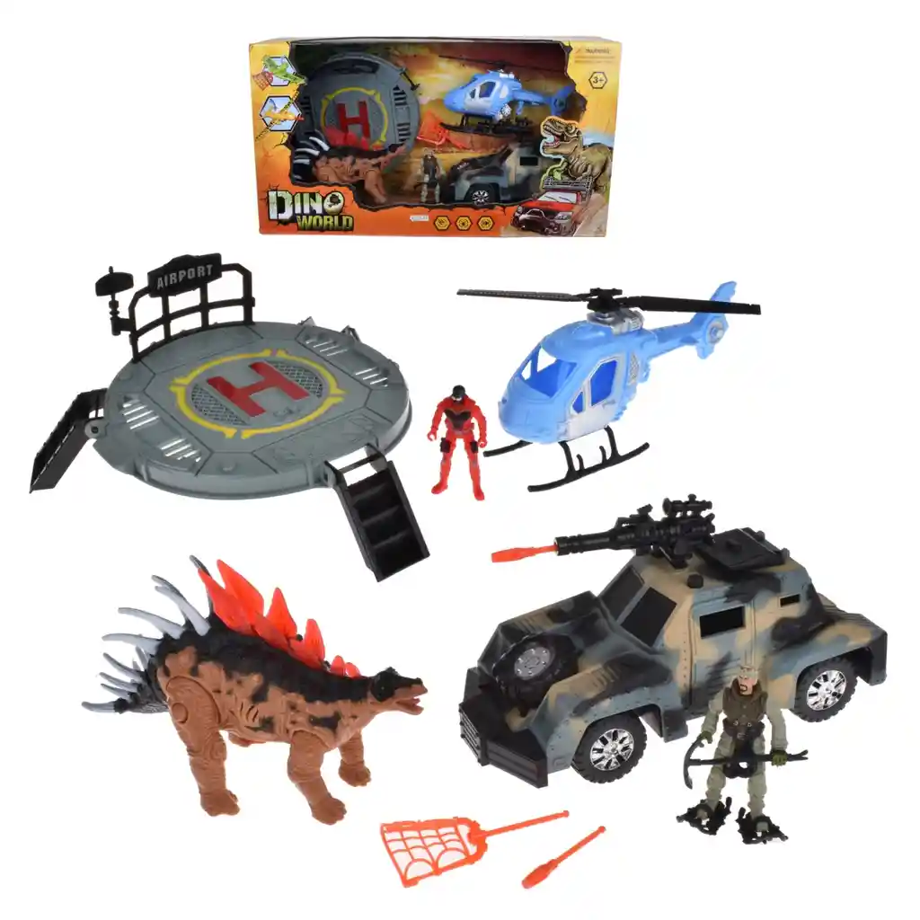 Viaja a través del tiempo con este super increíble Playset Mundo Jurásico el cual incluye 2 Vehículos, uno aéreo y otro terrestre, un furioso Dinosaurios y fantásticos Accesorios para que tengas una verdadera aventura jurásica, pasando interminables horas de diversión imaginando las más emocionantes historias, llenas de mucha acción y adrenalina. Con este juguete tus pequeños aprenderán a conocer los fundamentos de la comunicación y la cooperación; fomentando la confianza, la amistad y el desarrollo lingüístico. También fomenta a que creen un juego imaginativo promoviendo la historia de fantasía, el juego de rol y la creatividad.