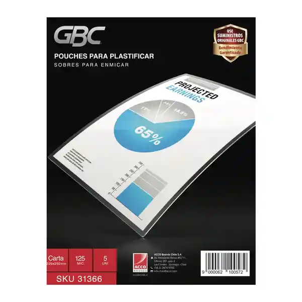 Contiene 5 Unidades. Los Pouches Plásticos Gbc Son el Complemento Perfecto Para su Máquina Laminadora ya Que le Brindan la Mejor Calidad y Protección Para Sus Documentos Fotos Afiches Credenciales Recetas Mapas Tarjetas Etc.