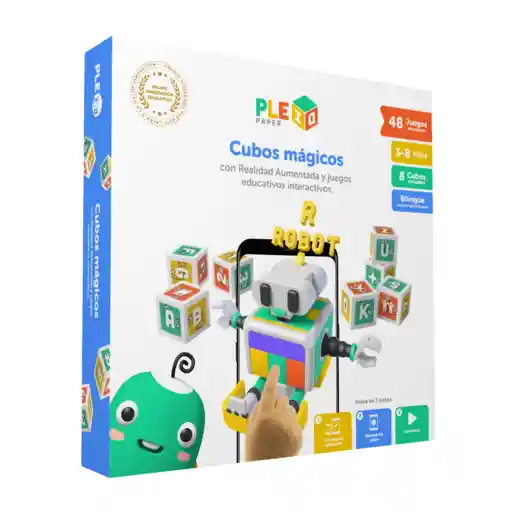 PleIQ Paper es la version armable de los cubos inteligentes PleIQ Home, el juguete educativo que usa Realidad Aumentada para desarrollar las Inteligencias Múltiples en niños de 3 a 8 años.Características: * Más de 48 experiencias interactivas con Realidad Aumentada * 8 inteligencias: Lingüística, Visual, Lógica-Matemática, Musical, Naturalista, Inter e Intrapersonal * Aprendizaje bilingüe en Inglés y Español * App móvil de PleIQ para teléfonos y tabletasEste set incluye: * 8 plantillas precortadas de cartulina para armar los 8 cubos PleIQ (letras, números y símbolos). * Código de activación de cuenta PleIQ. * Guía de inicio * App gratis para iOS y Android.Inicia en 3 pasos: 1. Arma los 8 cubos 2. Descarga el app gratis de PleIQ, activa tu cuenta y escanea lo cubos. 3. ¡Explora, juega y aprender!