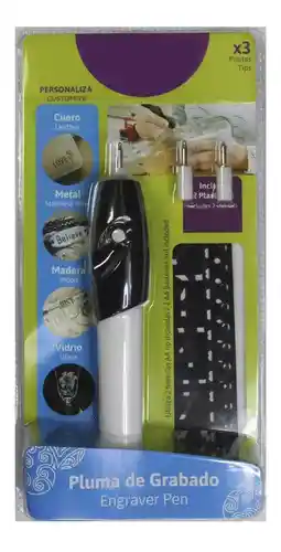 Plu!a de grabado. Marca pointer. Sirve para cuero metal madera vidrio . Incluye plantillas y 2 putas de repuesto (2 finas y 1 gruesa) Usa 2 pilas AA no incluidas