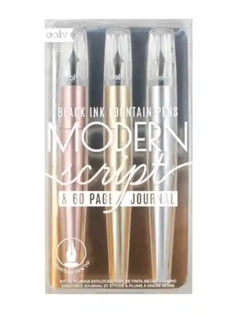Set de 3 plumas tinta negra con carcasas metalizadas, ideales para quienes quieren practicar esta clásica forma y estilo de escritura.