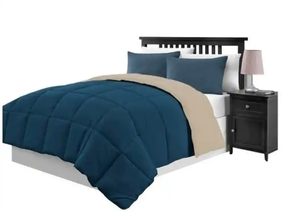 Plumón bicolor pluma de Ganso de 2 plazas Incluye 2 fundas de almohada del color del plumón Materiales: Tela 300 hilos, 50% algodón 50% polyester Plumón 100% pluma de ganso, 30% pluma de pecho Hipoalergénico, antibacterial y antiácaros. 500 GSM de gramaje Dos plazas, 210 x 240 cm.
