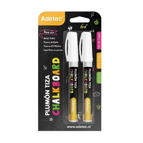 PLUMONES TIZA BLANCOS ADETEC Escribe y dibuja sobre metal, vidrio, pizarras led y superficies no porosas