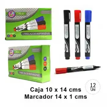 MARCADORES - PLUMONES PERMANENTES 12 UNIDADES ROJO-NEGRO-AZUL ARTE TOP