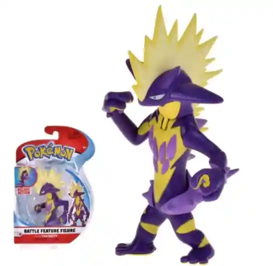 Obtén la NUEVA figura de Toxtricidad Pokémon 11 cms.con articulación y características dinámicas. Este increíblemente poderoso Pokémon de tipo eléctrico y veneno cobra vida con su característica Head Bang Battle. La toxicidad es de la región de Galar y cuando rasguea su pecho, genera cantidades masivas de electricidad. Esta figura a escala de 11 cms. presenta detalles auténticos y mecanismos dinámicos únicos que permiten Toxtricity to Head Bang. Un producto Pokémon oficial de Jazwares. Se recomienda de 4 años en adelante.