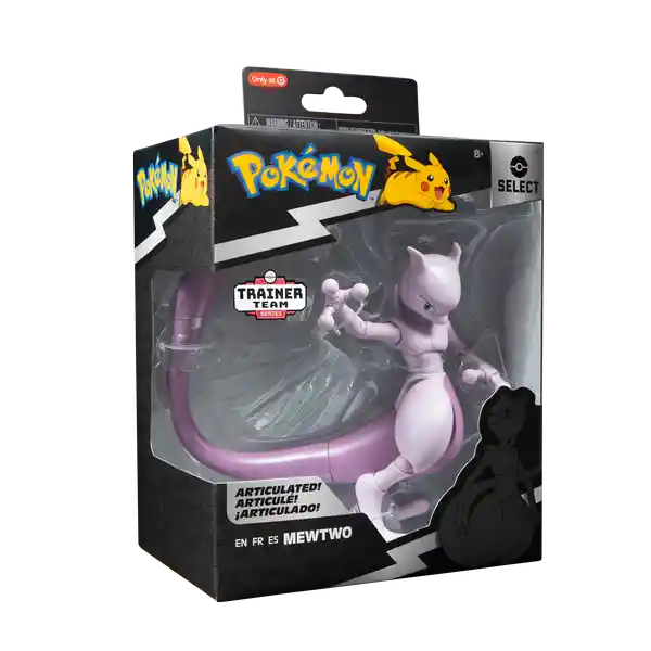 Elige a Mewtwo el Pokémon Genético. Esta Figura Superarticulada de 15 cm Está Muy Detallada y Cuenta Con Más de 15 Puntos de Articulación. También Incluye un Brazo Articulado Especial Para Una Exhibición Dinámica. Presentada en el Característico Empaque Negro y Plateado de la Serie Select Mewtwo Parece Salido de la Serie Animada Pokémon. Incluye: 1 Mewtwo Superarticulado de 15 cm 1 Brazo Articulado.