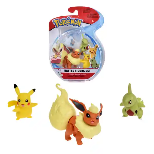 Pack Pokémon Contiene 3 Unidades. Desata el Increíble Poder de Tus Personajes Legendarios y Favoritos Pertenecientes al Mundo de Pokémon. Llega Hasta el Siguiente Nivel Recreando Tus Batallas Favoritas de la Serie o Creando Tus Propias Divertidas Aventuras Solo Deja Volar tu Imaginación y tú Creatividad. Este Pack de 3 Figuras Pokémon es el Regalo Perfecto Para Todos Los Fans y Coleccionistas de Esta Exitosa Serie. El Pack Incluye Las Figuras de Female Pikachu Larvitar y Flareon Las Cuales Pueden Llegar a Medir de 3 a 8 cm y Cada Una de Ellas Cuentan Con Detalles Altamente Realistas Para Que Vivas Una Experiencia Más Real y Divertida. Pasa Increíbles Horas de Diversión Jugando y Entrenando Con tu Pokémon Favorito Colecciónalos Todos y Realiza Batallas Épicas.