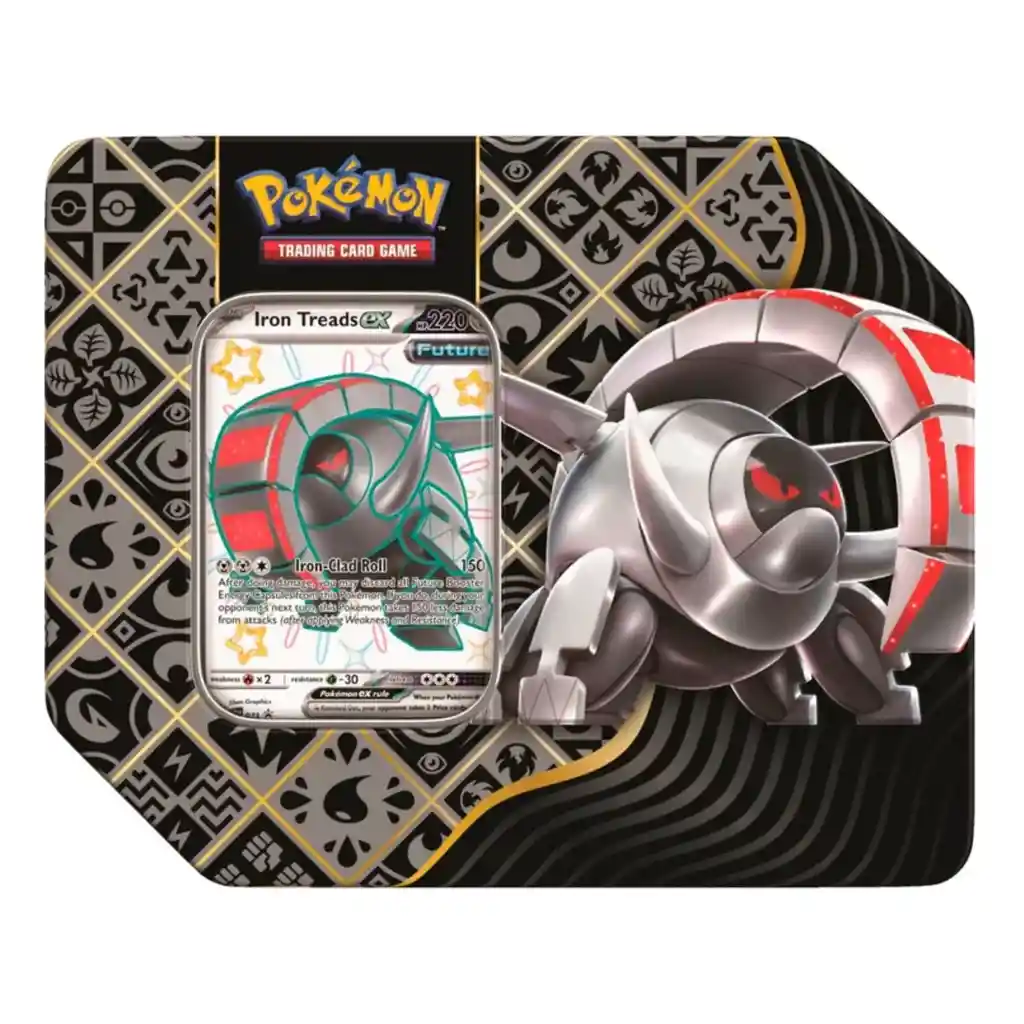 Contenido:* 1 carta holográfica de promoción de Iron Treads ex Shiny.* 5 paquetes de mejora de Escarlata y Púrpura-Destinos de Paldea de JCC Pokémon* 1 código para jugar Pokemon TCG online