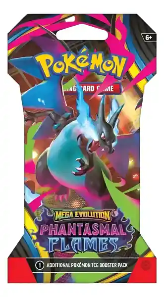 Envuelto en el Ardor de Sus Llamas Azules Mega-Charizard x ex Atraviesa un Oscuro Campo de Combate y Levanta Vuelo Para Acechar a Sus Rivales Desde lo Más Alto. Entre Las Sombras la Siniestra Silueta de Mega-Gengar ex Emerge Provocando un Gélido Escalofrío Capaz de Combatir el Intenso Calor. Conforme Ambos Preparan Sus Ataques Mega-Heracross ex Mega-Lopunny ex y Muchos Otros Pokémon se Posicionan Para Demostrar Todo su Poder en la Expansión Megaevolución-Llamaradas Fantasmales de Jcc Pokémon..