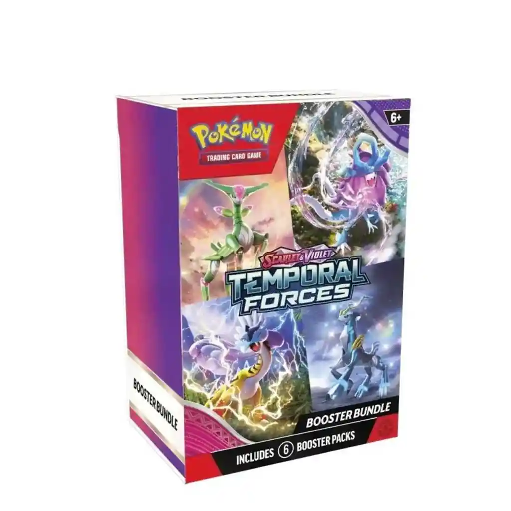 La lista de Pokemon del pasado y del futuro sigue aumentando! Ondulagua ex llega desde tiempos ancestrales junto a Electrofuria ex, mientras que Ferroverdor ex imparte justicia mistica con la tecnologia mas puntera y espadachina acompanado de Ferrotesta ex. Mas alla del Area Cero, Wugtrio y Farigiraf mutan sus tipos como Pokemon ex Teracristal, y Entrenadores Pokemon de todo el mundo aguardan el retorno de las excepcionales y poderosisimas cartas de AS TACTICO. Preparate para un combate atemporal entre bestias salvajes y apariciones ciberneticas con la expansion Scarlet amp; Violet ndash; Temporal Forces de Juego de cartas coleccionables Pokemon! Mas de 160 cartas El regreso de las cartas de AS TACTICO: 6 cartas de Entrenador y 1 Energia Especial Mas Pokemon del pasado y del futuro Mas de una docena de nuevos Pokemon ex, incluidos los Pokemon ex Teracristal de tipos cambiantes Montones de cartas de Pokemon y de Entrenador con ilustraciones especiales