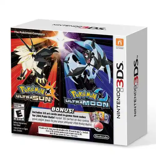 Pokemon ultra sun and ultra moon veteran trainer dual pack 3dsel pack pokémon ultra sun y pokémon ultra moon veteran trainer contiene los juegos pokémon ultra sun y pokémon ultra moon además de:• 16 tarjetas de arte• tarjeta de descarga digital para 100 poké balls para cada juego, 200 poké balls en total.pokémon ultrasol y pokémon ultraluna nos traen una nueva aventura en la región tropical de alola en exclusiva para la familia de consolas nintendo 3ds. los jugadores podrán vivir una historia alternativa que se desarrolla en el mismo mundo que pokémon sol y pokémon luna, además de nuevos pokémon que no estaban en pokémon sol ni en pokémon luna. habrá elementos adicionales que te permitirán disfrutar de tu aventura aún más y descubrir secretos escondidos de alola. características:- tus nuevas aventuras tendrán lugar en un archipiélago de islas tropicales. la región de alola se compone de cuatro islas naturales y una artificial, y es un destino turístico muy popular.- en ella pueden encontrarse especies de pokémon autóctonos, que han vivido aquí durante generaciones, junto a otras especies de reciente introducción provenientes de otras regiones. en la exuberante naturaleza de esta región, además, se pueden encontrar pokémon jamás vistos anteriormente.- uno de los aspectos de la peculiar cultura de alola es el recorrido insular, una especie de peregrinaje aventurero por las cuatro islas. esto ayuda a que los jóvenes del lugar se conviertan en fuertes entrenadores pokémon.- en la región de alola, un grupo de rufianes conocido como el team skull está causando un sinfín de problemas. se dedican a robar los pokémon de la gente, entorpecer las pruebas del recorrido insular y a cometer todo tipo de fechorías.- tras elegir tu personaje entre un personaje masculino o femenino, podrás personalizar su nombre y apariencia.- los movimientos z son movimientos de gran potencia que solo podrás usar una vez por combate.- uno de los aspectos más emblemáticos de la cultura de alola son las pokémonturas, pokémon que ayudan a la gente a llegar a puntos que de otro modo resultarían inaccesibles.- habitualmente en los combates pokémon, los enfrentamientos se producen entre dos entrenadores. en el battle royale, â¡cuatro entrenadores se enfrentan todos contra todos en un combate feroz!