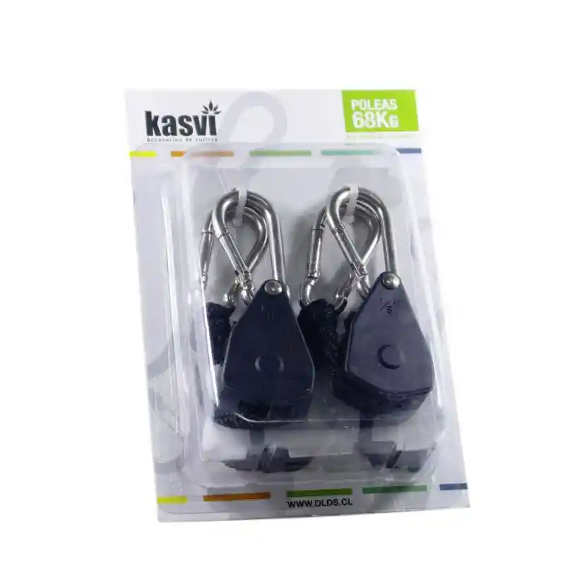 Maximiza la eficiencia y flexibilidad de tu espacio de cultivo indoor con las Poleas 68 Kg de Kasvi. Este kit de 2 poleas regulables, fabricadas en polipropileno trenzado resistente, te permite ajustar la altura de tus equipos con facilidad gracias a su botón de freno integrado. Los mosquetones inoxidables soportan hasta 68 kg cada uno, asegurando una sujeción segura para luces, filtros y otros accesorios esenciales en tu cultivo. No dejes pasar la oportunidad de optimizar tu cultivo con la calidad y practicidad que ofrecen las Poleas Kasvi.