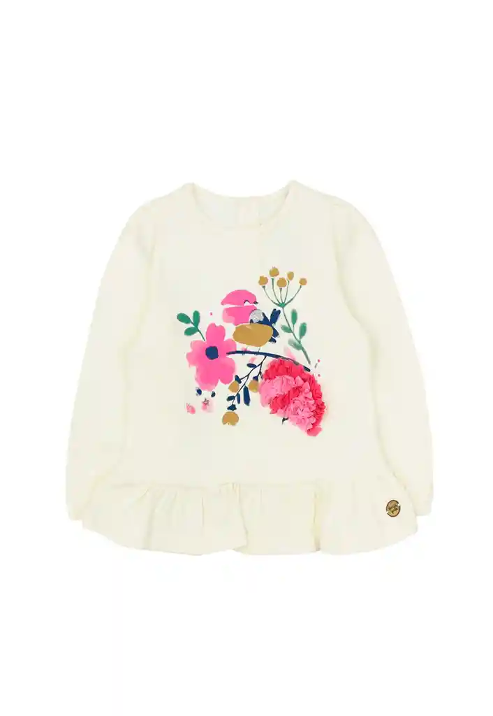 Polera bebé niña vuelos foresta 174 Talla: 18 a 24 meses Género: Niña Modelo :Foresta Composición: 95% Algodón 5% Elastano Garantía: 6 meses Cuidados de la prenda: Lavado con agua a tº máxima de 30º. No blanquear. No dejar en remojo. No secar a máquina. No planchar sobre aplicación