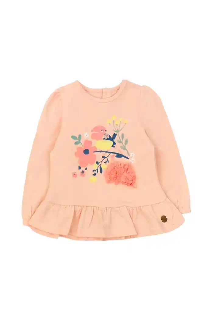 Polera bebé niña vuelos foresta 174 Talla: 12 a 18 meses Género: Niña Modelo :Foresta Composición: 95% Algodón 5% Elastano Garantía: 6 meses Cuidados de la prenda: Lavado con agua a tº máxima de 30º. No blanquear. No dejar en remojo. No secar a máquina. No planchar sobre aplicación