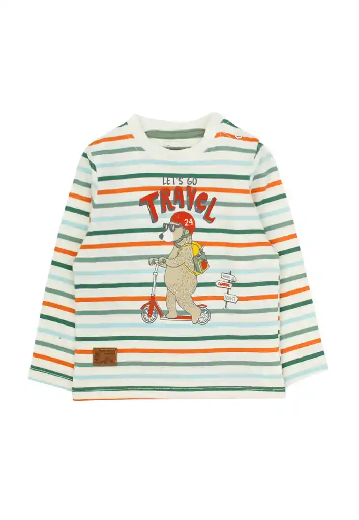 Polera bebé niño listado foresta 140 Talla: 6 a 12 meses Género: Niño Modelo :Foresta Composición: 100% Algodón Garantía: 6 meses Cuidados de la prenda: Lavado con agua a tº máxima de 30º. No blanquear. No dejar en remojo. No secar a máquina. No planchar sobre aplicación