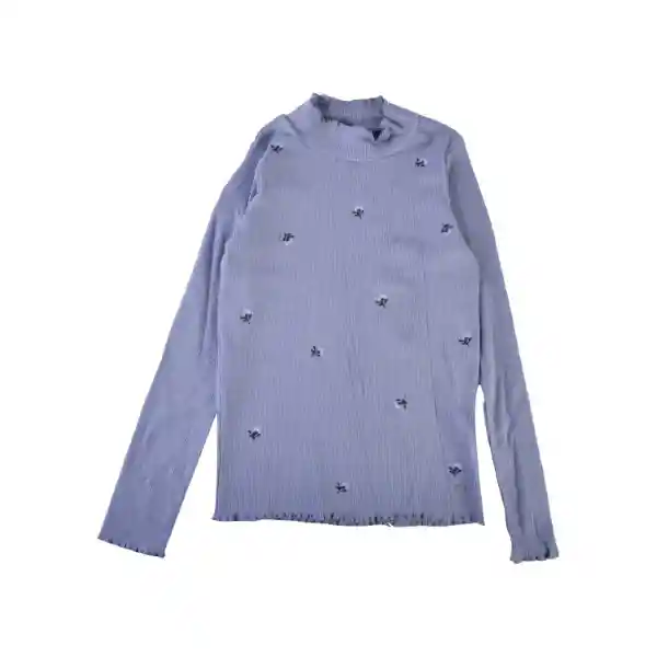 Manga Larga Cuello Alto Moda Niña. Elástica y Especial Tela en Rib Con Bordados Florales en Toda la Prenda. Dos Combinables Colores Para Elegir. Tipo de Producto: Color: Azul Ocasión: Escolar Casual Composición: 95% Algodón 5% Elastano Modelo: Tvx600Azu Temporada: Otoño Invierno Cuidados: Lavar a Máquina Max 30° C/No Usar Cloro/No Usar Secadora/Lavar Por Separado o Con Colores Similares.