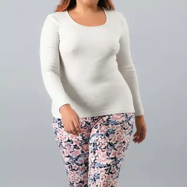 Polera Cuello Cuadrado Color Beige Melange Talla S Flores