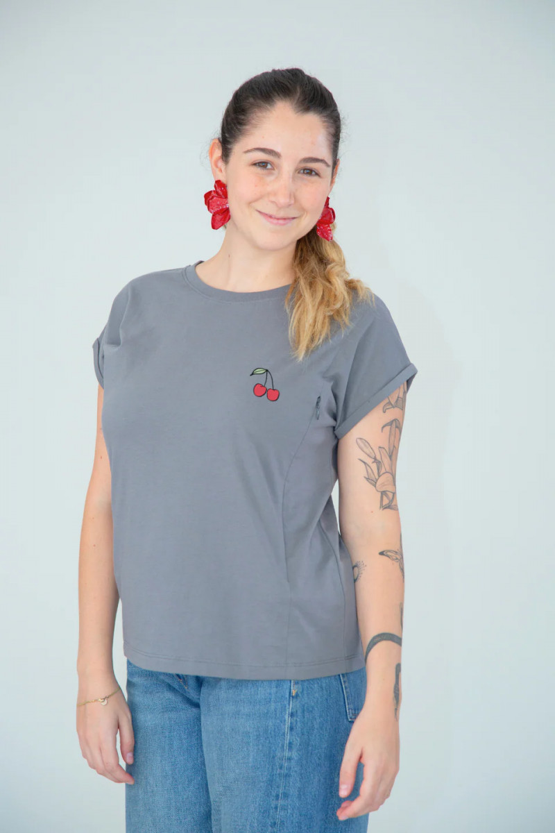 Nuestra polera de lactancia cherry freethemama, de algodón Pima Peruano con cierres invisibles: la solución perfecta si buscas comodidad y estilo.