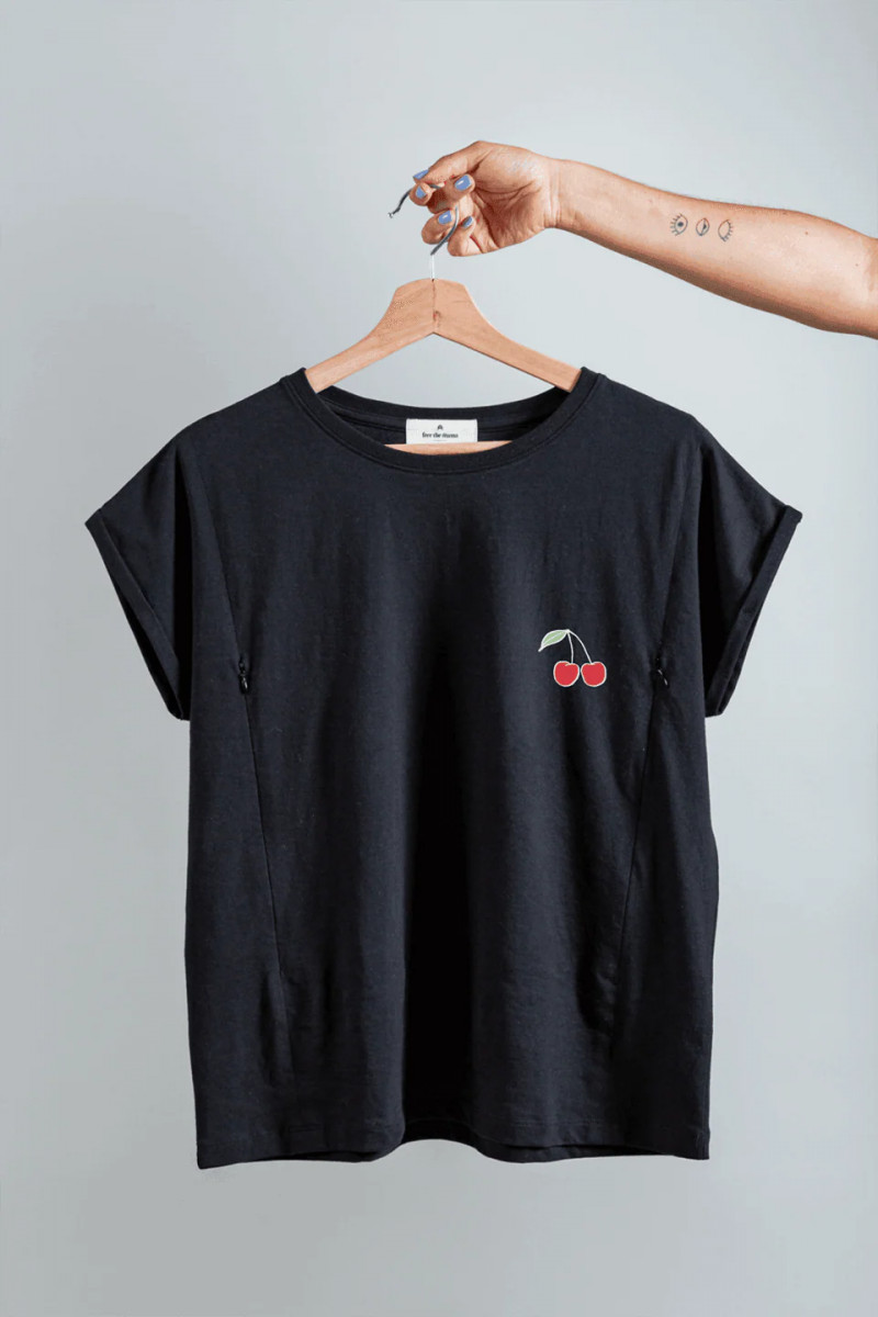 Nuestra polera de lactancia cherry freethemama, de algodón Pima Peruano con cierres invisibles: la solución perfecta si buscas comodidad y estilo.