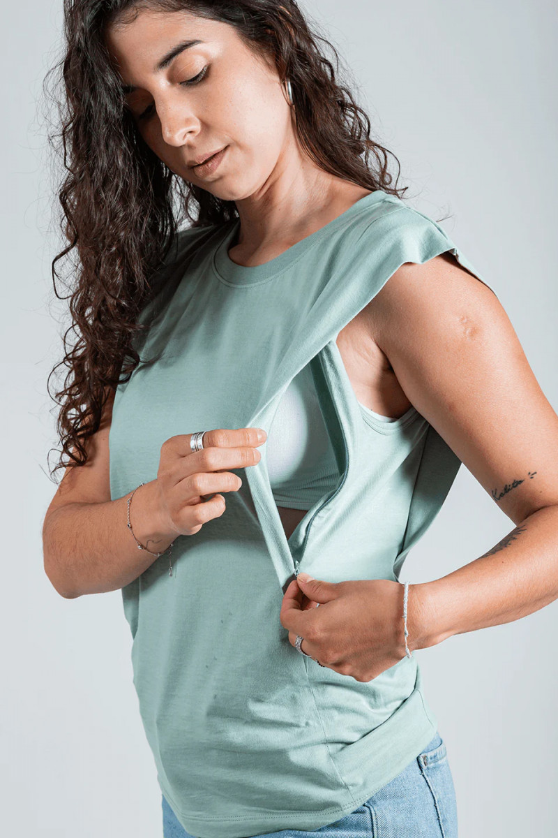 Nuestra polera de lactancia Fer (Tank) freethemama, de algodón Pima Peruano con cierres invisibles: la solución perfecta si buscas comodidad y estilo.