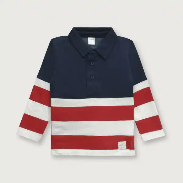 Polera Manga Larga Con Cuello y Botones en Bloques de Color.