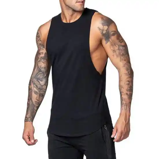 Polera Deportiva Estilo Musculosa Elaborada en Color Negro. Diseño Sin Mangas Con Sisas Caídas Para Brindar Mayor Comodidad. Talla M Talla M