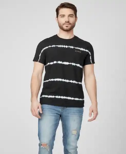 Para Hombre Manga Corta Con Corte Regular y Largo a la Cadera. Diseño en Tono Liso Con Franjas Horizontales Decorativas y Bordado de Letras Guess en Parte Superior Izquierda. Con Cuello Redondo. Materiales: 100% Cotton.