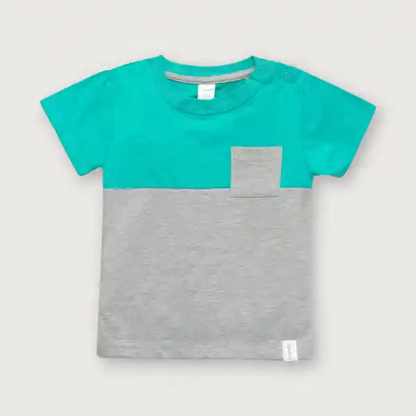 Manga Corta Cuello Redondo Con Abertura de Broches a Presión en el Hombro Bolsillo de Pecho Color de la Prenda en Dos Bloques Color Superior Verde e Inferior Gris Melange.