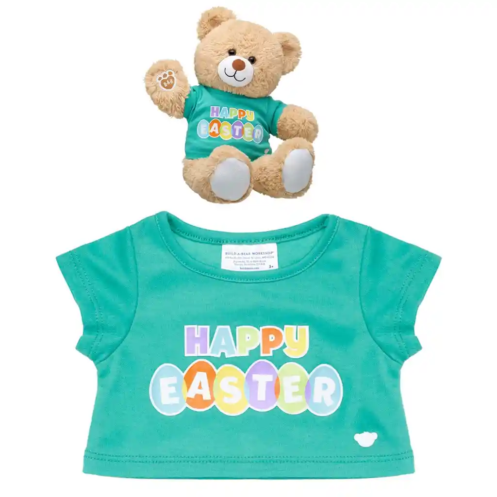 Completa el regalo perfecto personalizando a tu mejor amigo peludo con increíbles accesorios totalmente únicos y especiales. Completa el look de tu amiguito Build a Bear, con esta hermosa polera en color verde paste, con una temática muy singular, ya que está estampada con la frase de Happy Easter en divertidos colores y con huevitos de Pascua. ¿Qué estas esperando? A tu amigo peludo le encantará lucir muy bien mientras disfrutan de inmemorables jornadas de diversión.