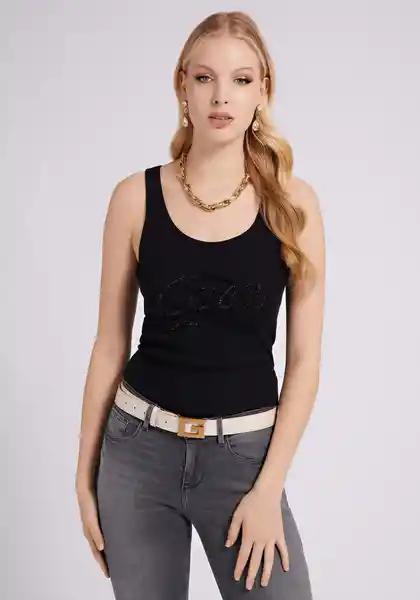 Para Mujer Sin Mangas Con Corte Regular y Largo a la Cadera. Diseño en Tono Liso Con Logo de Letras Guess Con Pedrería Decorativa en Parte Frontal. Con Cuello Redondo. Materiales: 100% Cotton.