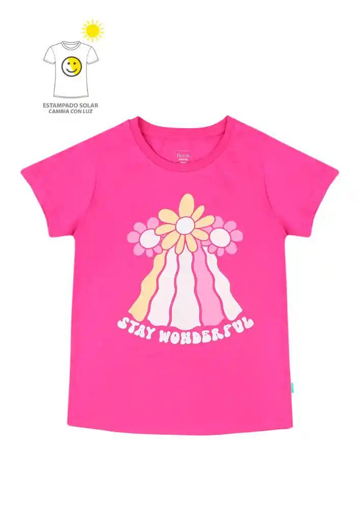 Polera jr niña estampado solar 799 Fucsia 10 años Género: Niña Modelo: Power Light Composición: 60% Algodón 40% Poliéster Garantía: 6 meses.