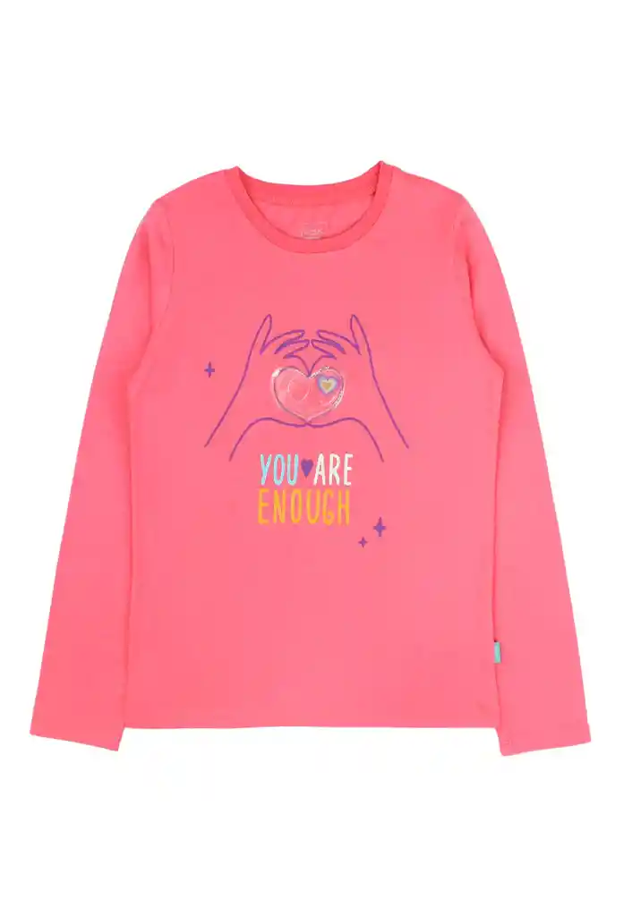 Polera junior niña aplicación day to day 765 Talla: 10 años Género: Niña Modelo :Day To Day Composición: 60% Algodón, 40% Poliéster Garantía: 6 meses Cuidados de la prenda: Lavado con agua a tº máxima de 30º. No blanquear. No dejar en remojo. No secar a máquina. No planchar sobre aplicación