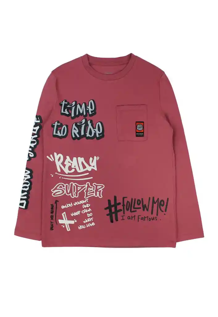 Polera junior niño estampada move 333 Talla: 10 años Género: Niño Modelo :Move Composición: 80% Algodón 20% Poliéster Garantía: 6 meses Cuidados de la prenda: Lavado con agua a tº máxima de 30º. No blanquear. No dejar en remojo. No secar a máquina. No planchar sobre aplicación