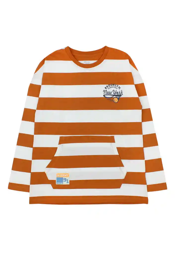 Polera Junior Niño Listada Academy 327 Café Claro 10 Años
