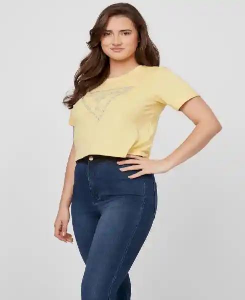 Para Mujer Manga Corta Con Corte Regular y Largo a la Cadera. Diseño en Tono Liso Con Logotipo Triangular Guess Con Pedrería en Parte Frontal y Cuello Redondo. Materiales: 100% Cotton.