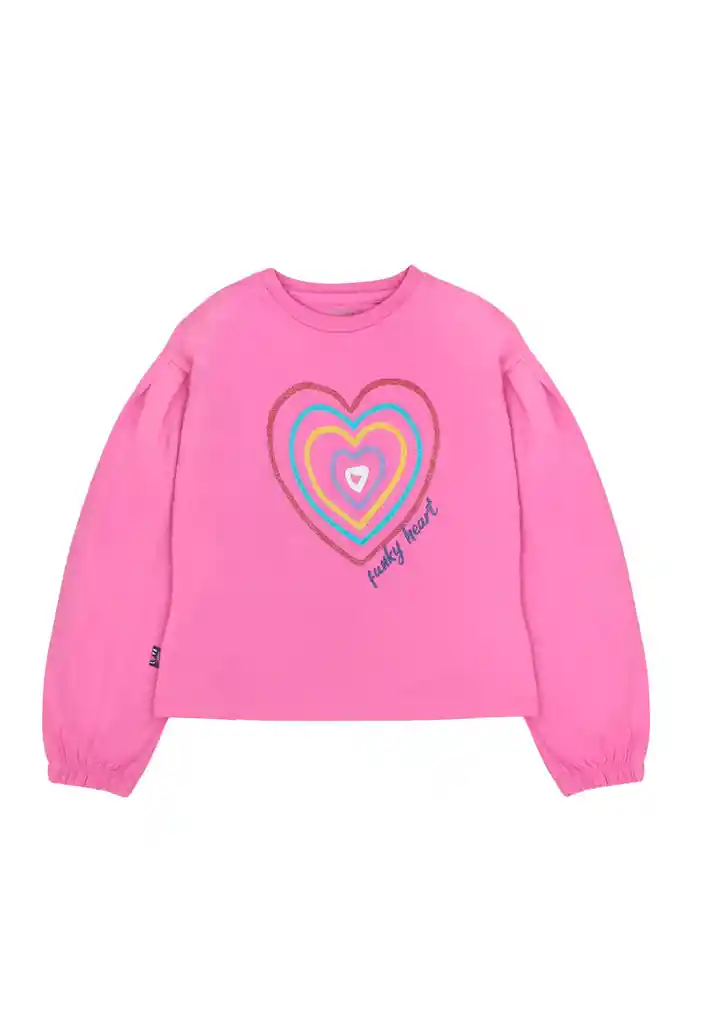Polera kids niña manga globo move 278 Talla: 2 años Género: Niña Modelo :Move Composición: 80% Algodón 20% Poliéster Garantía: 6 meses Cuidados de la prenda: Lavado con agua a tº máxima de 30º. No blanquear. No dejar en remojo. No secar a máquina. No planchar sobre aplicación