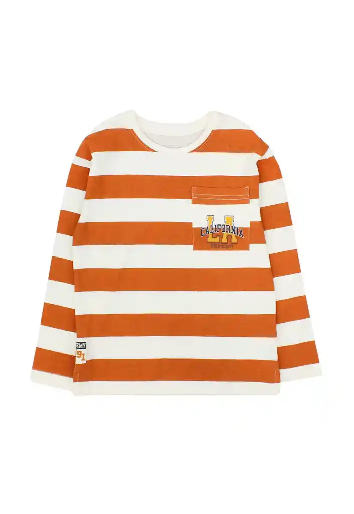 Polera kids niño listada academy 227 Talla: 6 años Género: Niño Modelo :Academy Composición: 80% Algodón 20% Poliéster Garantía: 6 meses Cuidados de la prenda: Lavado con agua a tº máxima de 30º. No blanquear. No dejar en remojo. No secar a máquina. No planchar sobre aplicación