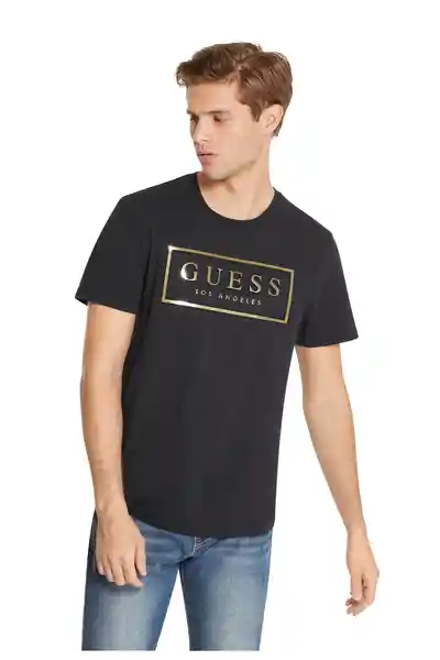 Modelo: X93I13RI7R1. De Hombre de Manga Corta Cuello Redondo y Largo a la Cadera. Diseño Regular de Tono Liso Con Estampado de Letras Guess Los Ángeles en un Rectángulo en el Pecho. Materiales: 100% Cotton.