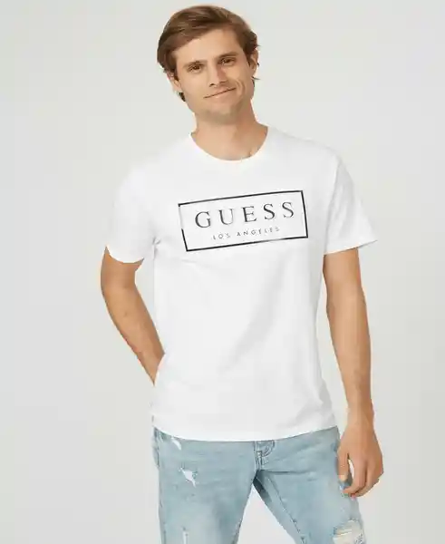 Modelo: X93I13RI7R1. De Hombre de Manga Corta Cuello Redondo y Largo a la Cadera. Diseño Regular de Tono Liso Con Estampado de Letras Guess Los Ángeles en un Rectángulo en el Pecho. Materiales: 100% Cotton.