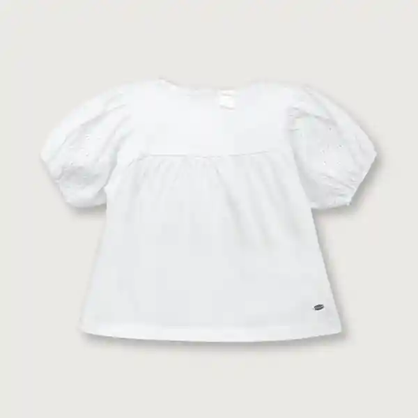 De Color Blanco Manga Globo Con Elastico en el Borde Corte Imperio Con la Parte Superior Del Pecho y la Espalda de Broderie. Abertura en la Espalda Con Botones.