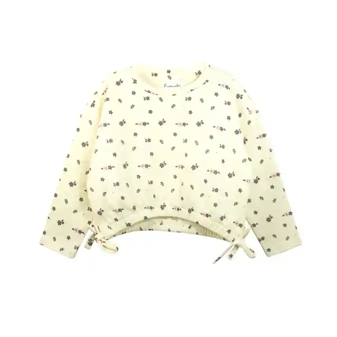 Polera para niña manga Larga con tela acanalada 100% algodón, mucho más suave De estilo moderno, cuello redondo y amarras ajustables en la cintura Tela femenina con estampado floral.