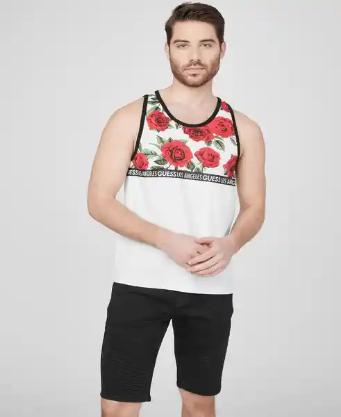 Polera Manga Sisa Moore Roses Tank Blanco Talla L Guess