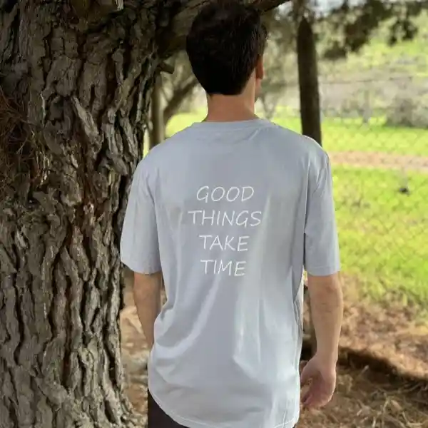 Polera manga corta hecha de algodón premium suave y equipada con tecnología Anti-Pilling para evitar pelusas. No se encoge gracias a la tecnología Anti-Shrink. Es una polera pensada para quienes persiguen sus sueños. Su mensaje “No te rindas, las cosas buenas toman tiempo” no es solo una frase, es un recordatorio de que la constancia y la paciencia son claves para alcanzar cualquier meta. 100% Algodón Premium Soft | Regular Fit | Etiqueta estampada para mayor comodidad | Logo trasero | El modelo mide 1,70 m y usa talla S.