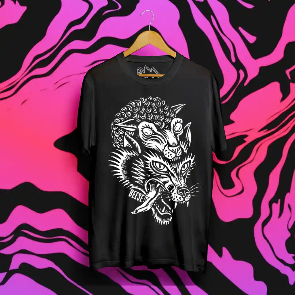Polera Modelo Lobo Negra Talla L. Manga corta