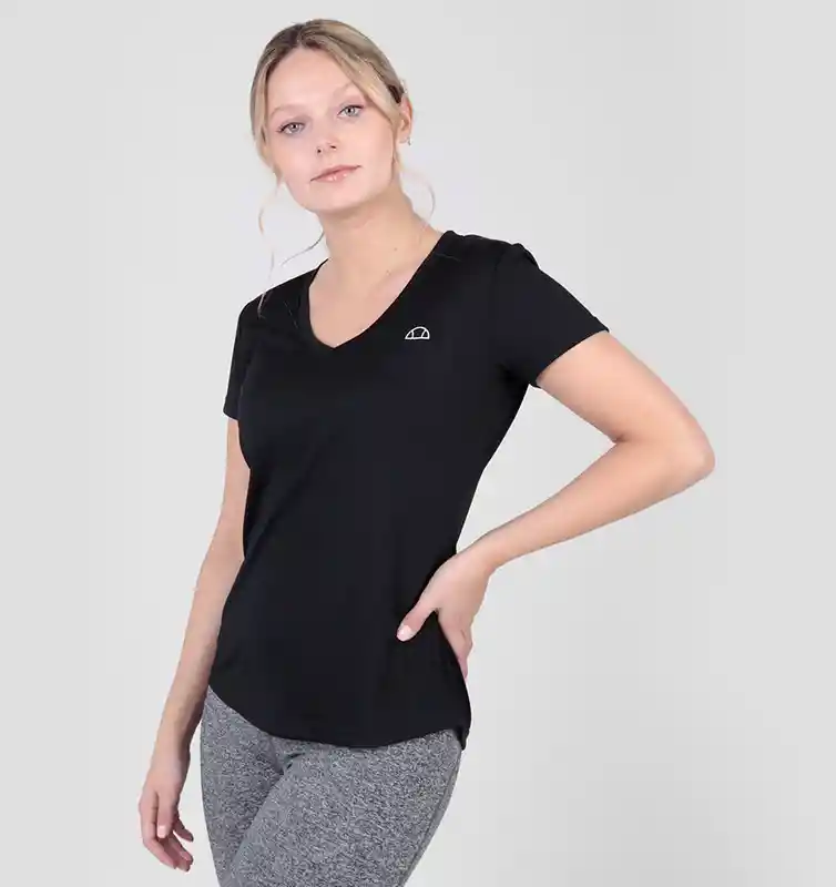Polera Mujer Ellesse Agata Negro. Polera manga corta cuello en v, fit regular, tela liviana y fresca ideal para hacer deporte, de secado rapido. Ellesse es una marca amigable y coqueta, ideal para aquellos a los que les fascina el color, adoran la vitalidad y viven el momento. Somos una marca italiana, mostramos la esencia de una gran cultura plasmada en colecciones que brindan sofisticación, elegancia y distinción para la actividad física contemporánea.