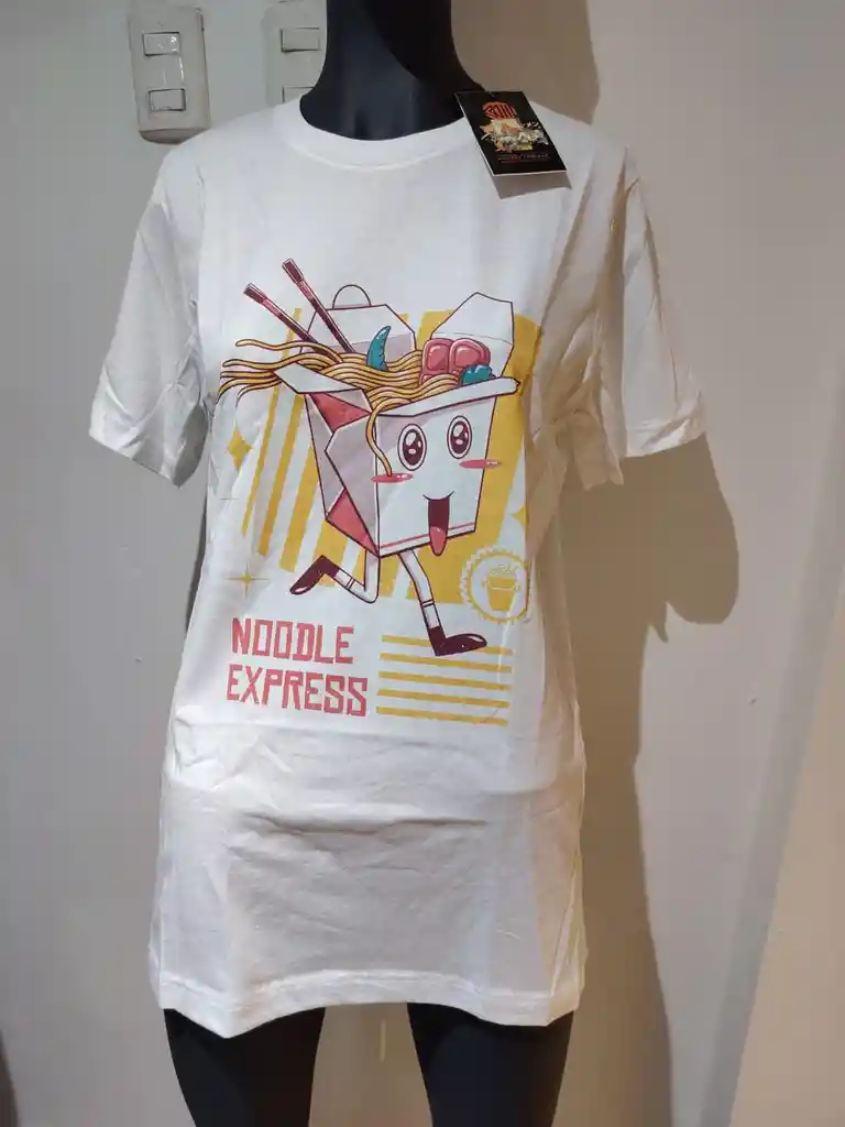Polera blanca con diseño divertido de noodles estilo kawaii. 🍜 TALLAS -M