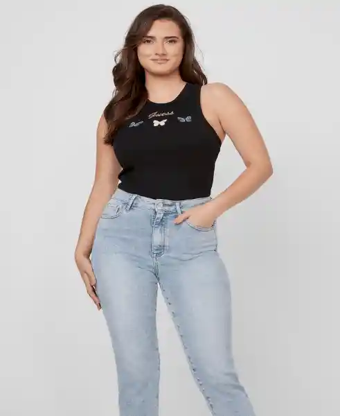 Para Mujer Sin Mangas Con Corte Regular y Largo a la Cadera. Diseño en Tono Liso Con Bordado de Letras Cursivas Guess y Mariposas Estampadas en Parte Frontal. Materiales: 100% Cotton.