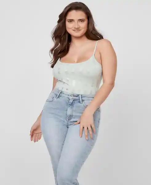 Para Mujer Sin Mangas Con Corte Regular y Largo a la Cadera. Diseño en Tono Liso Con Estampado de Letras Guess en Vertical. Materiales: 5% Elastane Spandex 95% Cotton.
