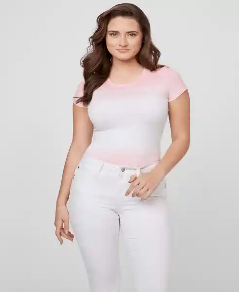 Para Mujer Manga Corta Con Corte Regular y Largo a la Cadera. Diseño en Tono Degradado Con Bordado de Logotipo Triangular Guess en Parte Superior Izquierda. Con Cuello Redondo. Materiales: 5% Elastane Spandex 95% Cotton.