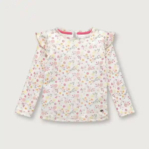 Manga Larga de Color Off White de Rib Desagujado Vuelo en Los Hombros y Full Print de Flores.